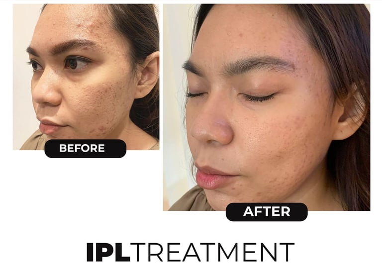 Intense Pulsed Light (IPL) therapy stimulating new collagen production to diminish acne kill the bacteria, reduce redness & pigmented skin.